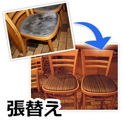 地元、群馬県にある飲食店様の椅子の張替えを行いました。