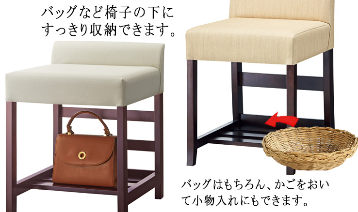 木製椅子、和風タイプのイスの中から荷物収納が可能なチェアがこちら。